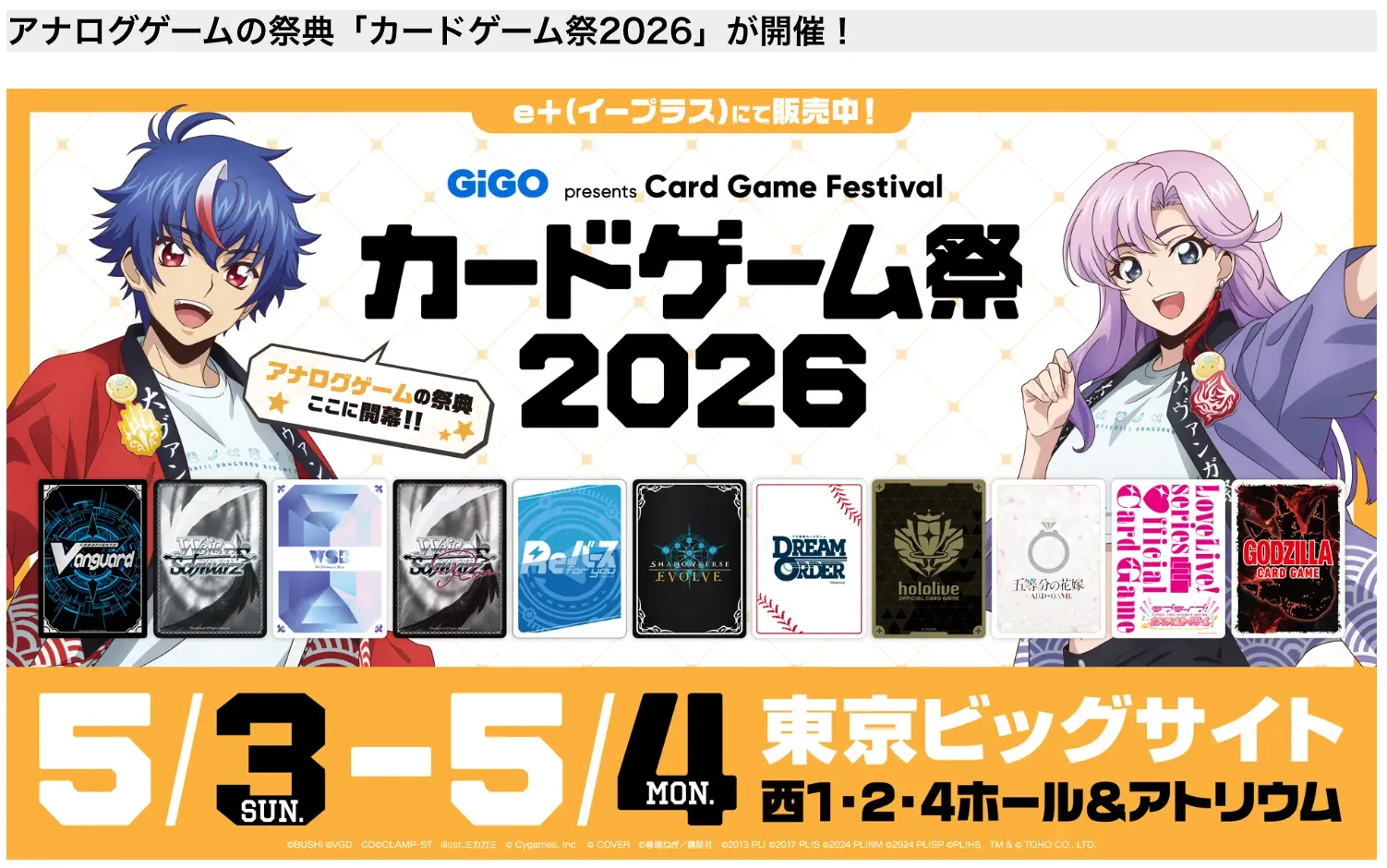 このたび、アナログゲームの祭典「カードゲーム祭2026」(2026年5月3日・4日、東京ビッグサイト)への出展が決定いたしました。弊社にとって、カードゲーム祭への出展は今回が初めてとなります。